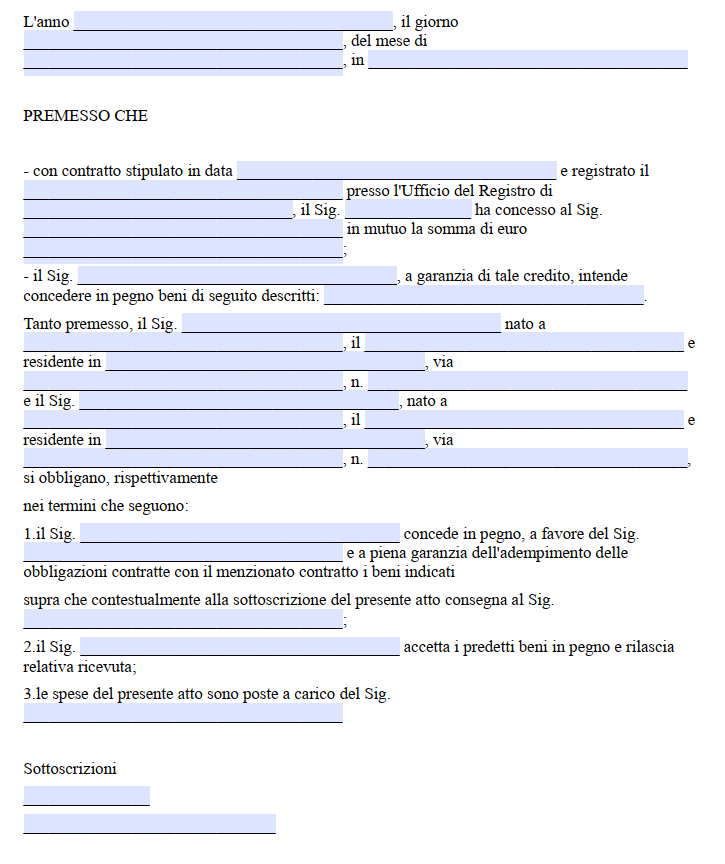 Modello Contratto di Pegno tra Privati PDF Editabile